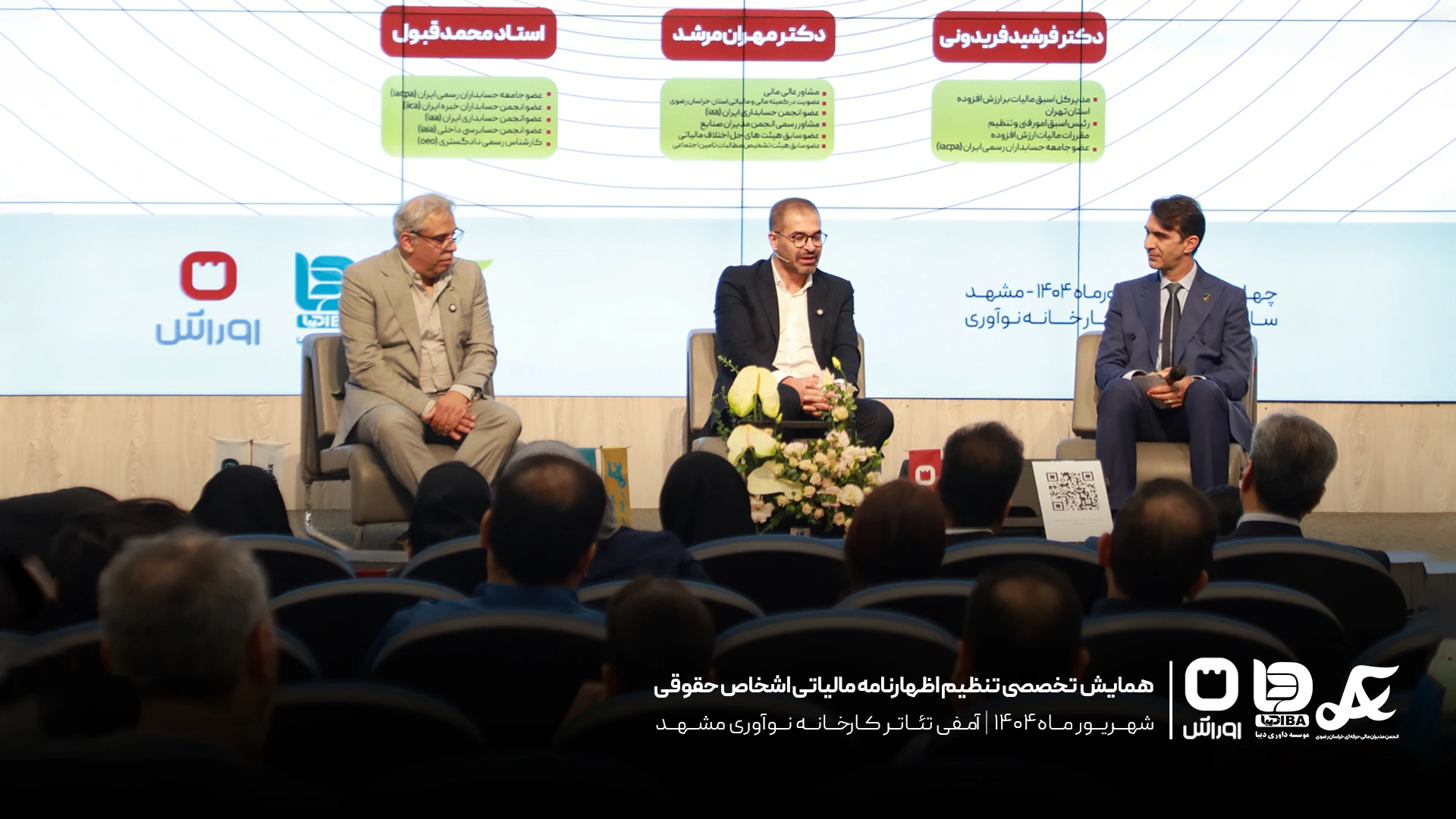 بخش پایانی برنامه به پنل پرسش و پاسخ با حضور دکتر مهران مرشد (رئیس انجمن مدیران مالی حرفهای استان خراسان) و استاد محمد قبول اختصاص داشت. این بخش فرصتی فراهم آورد تا دغدغههای واقعی مدیران مالی، حسابداران و مشاوران مطرح شود و شرکتکنندگان پاسخهای تخصصی و عملیاتی دریافت کنند.