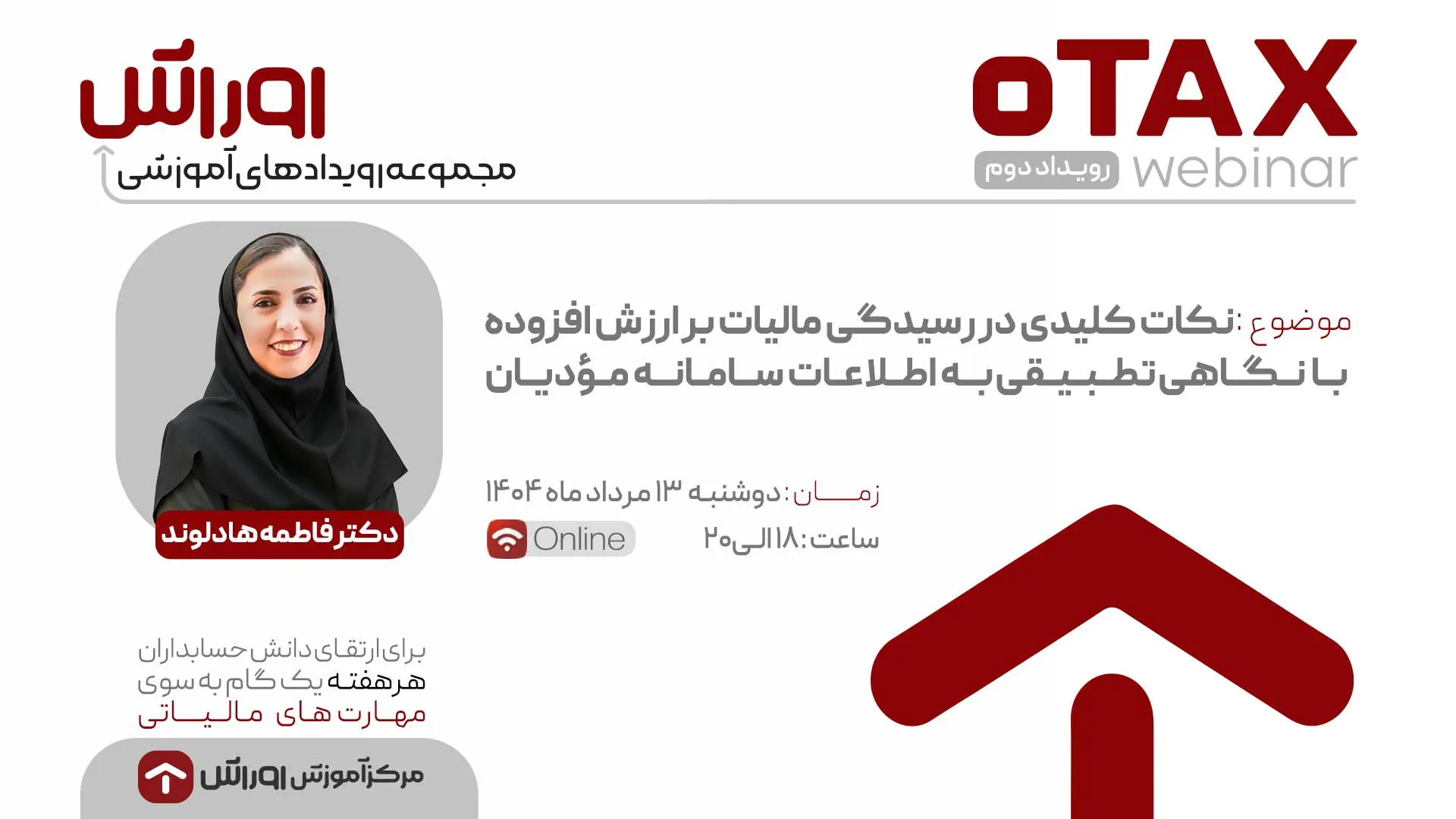 این رویداد، دومین جلسه از سلسله وبینارهای مالیاتی oTAX است که با هدف ارتقاء توان تخصصی مدیران و کارشناسان مالی در مواجهه با الزامات سامانه مؤدیان و مالیات بر ارزش افزوده برگزار میشود. در این مجموعه، تلاش داریم با نگاهی دقیق و تخصصمحور، مهمترین دغدغههای مالیاتی روز کشور را بررسی نموده و راهکارهایی اجرایی برای کاهش ریسکهای مالیاتی ارائه کنیم.