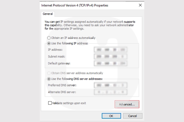 مرحله ۶: برای ورود به تنظیمات پیشرفته DNS روی دکمه Advanced کلیک کنید.