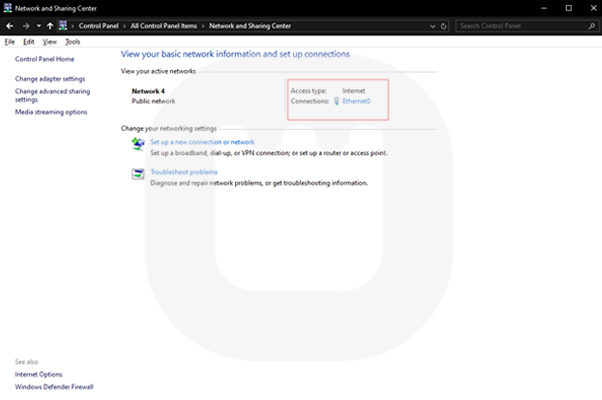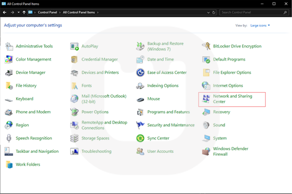 گزینه Network and Sharing Center را انتخاب کنید.