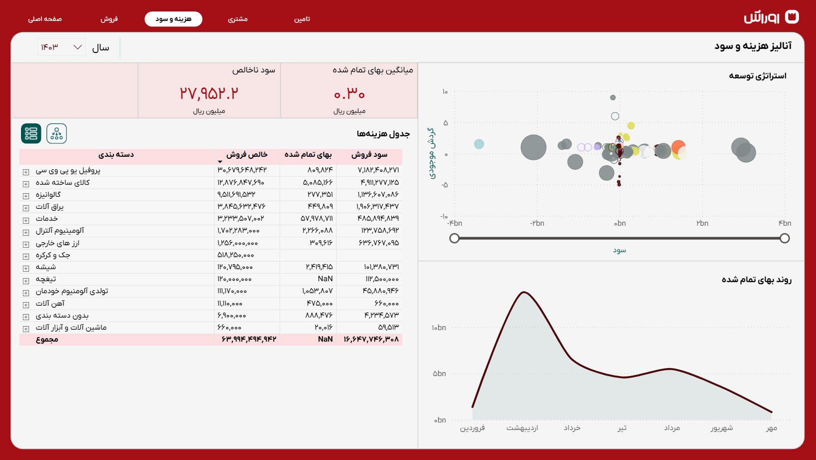 نمایش تراکنش‌های مالی، سود و زیان و جریان نقدی در قالب نمودارها و داشبوردهای بصری