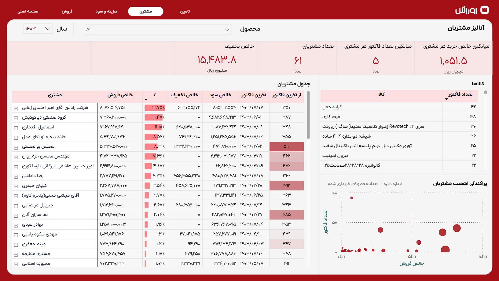 با استفاده از هوش تجاری (BI)، داده‌های پراکنده را به گزارش‌های بصری، استاندارد و تصمیم‌ساز تبدیل کنید.