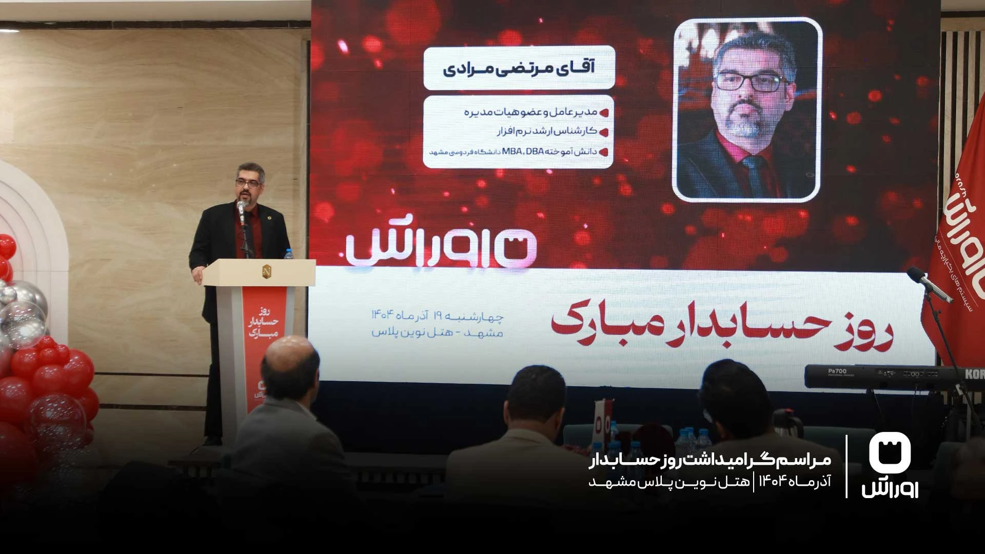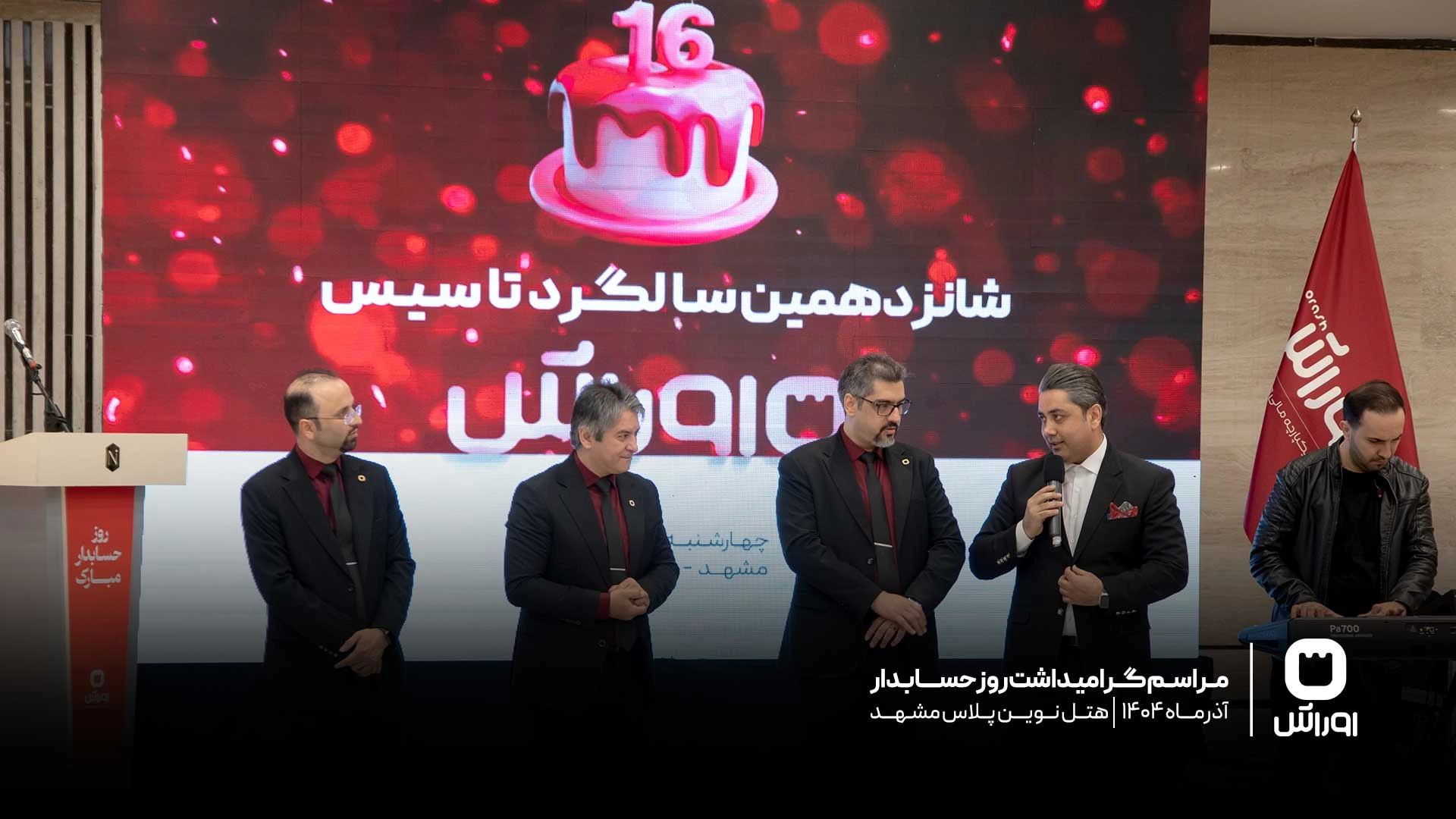 جشن روز حسابدار و شانزدهمین سالگرد تأسیس گروه نرمافزاری اوراش، با حضور جمعی از اساتید برجسته حسابداری کشور، مدیران، مشاوران، فعالان حوزه مالی و مهمانان ویژه، در فضایی حرفهای و صمیمی، در هتل نوین پلاس مشهد برگزار شد.