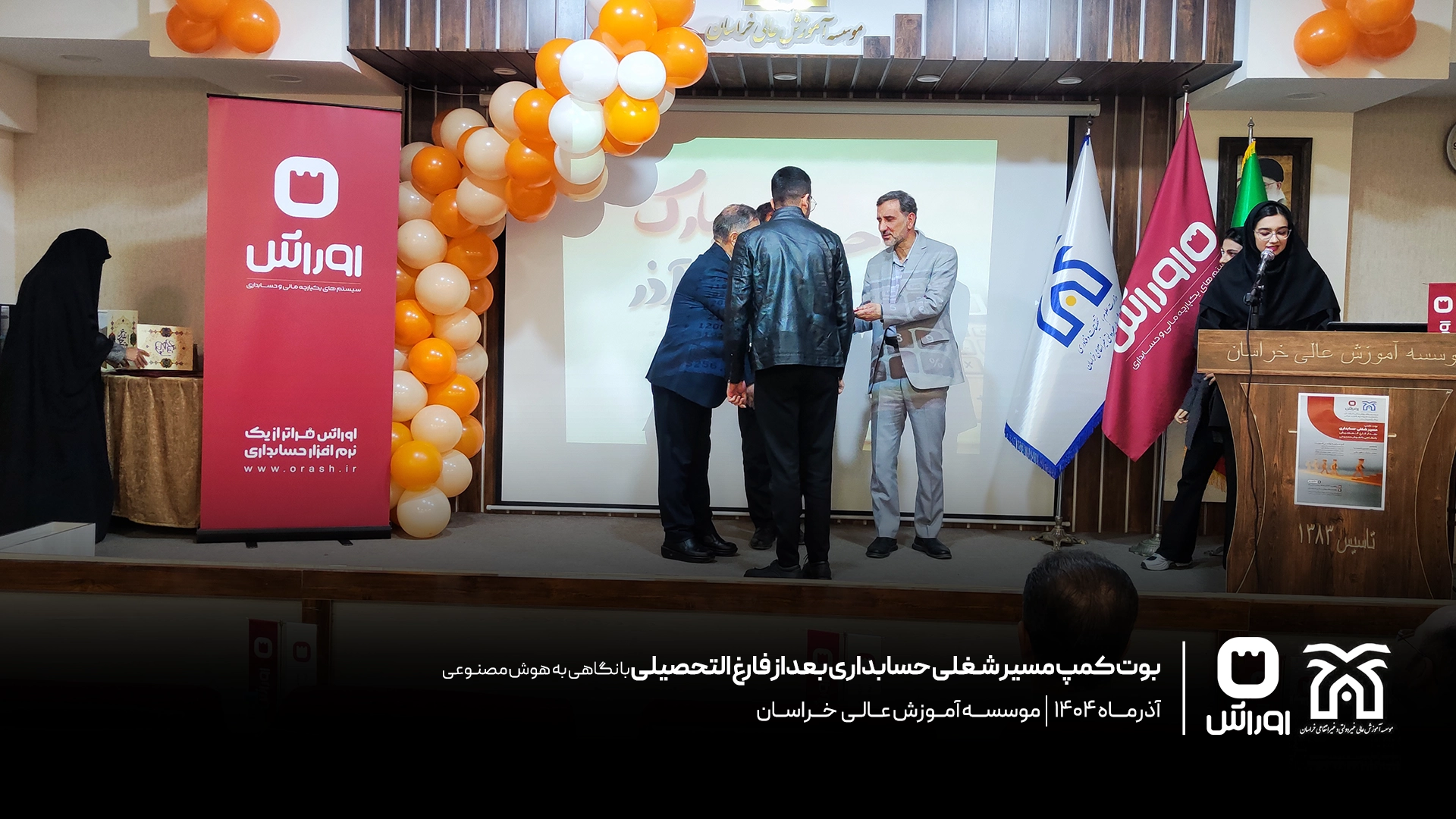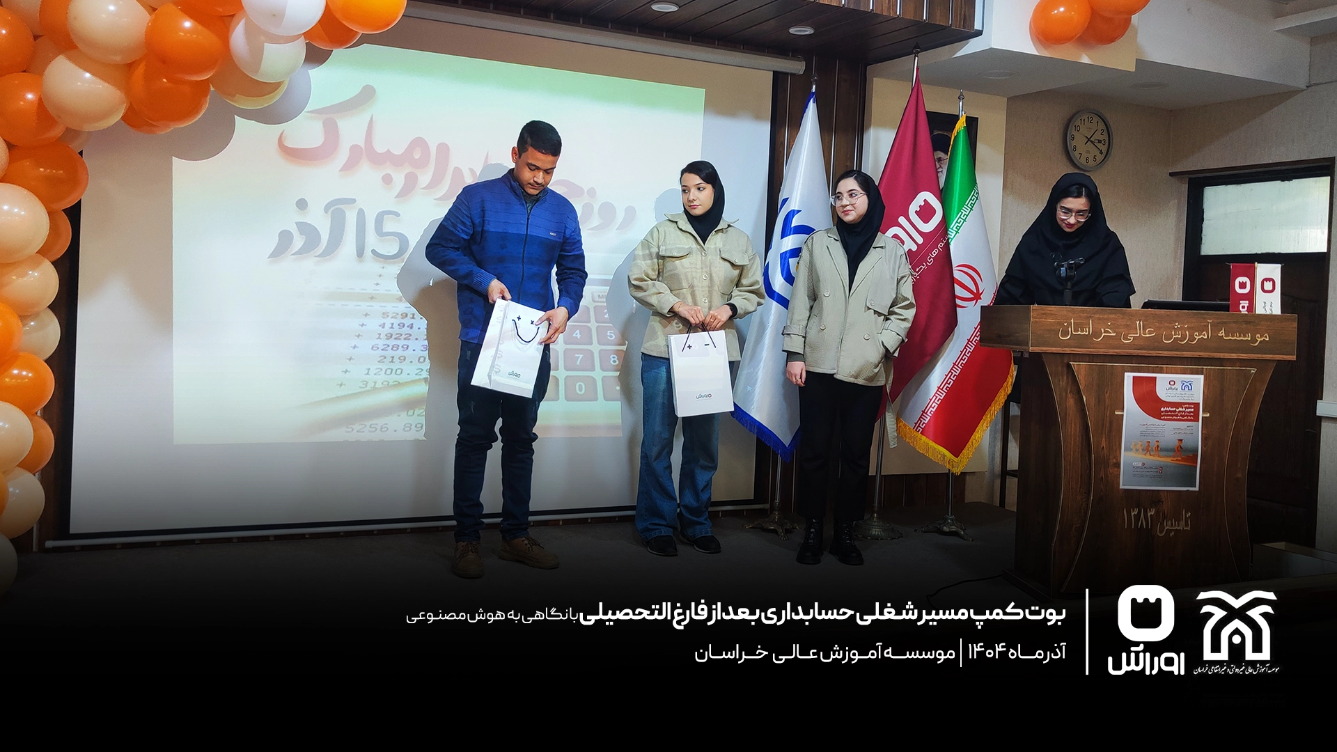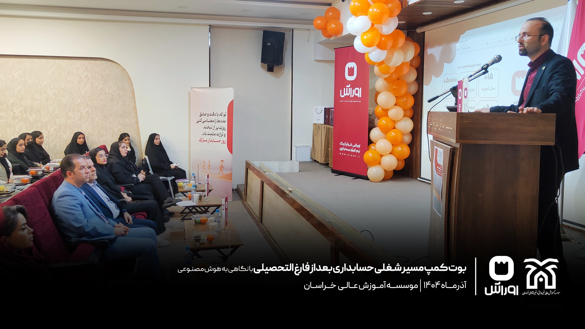 بوت‌کمپ تخصصی «مسیر شغلی حسابداری بعد از فارغ‌التحصیلی» به مناسبت روز حسابدار در مرکز آموزش عالی خراسان با حضور دانشجویان رشته حسابداری برگزار شد. در این رویداد، محمدحسین احمدنیا، مدیر گروه حسابداری این مرکز، به تبیین مسیر ورود حرفه‌ای به بازار کار پرداخت و آقای محمد ارشد طهرانی، هم‌بنیان‌گذار شرکت اوراش، با تمرکز بر نقش هوش مصنوعی، به بررسی تفاوت‌های دانشگاه و بازار کار و مهارت‌های مورد انتظار حسابدار آینده پرداخت. این برنامه با برگزاری مسابقه تخصصی، تقدیر از دانشجویان برتر و اهدای جوایز و لوح یادبود به پایان رسید.