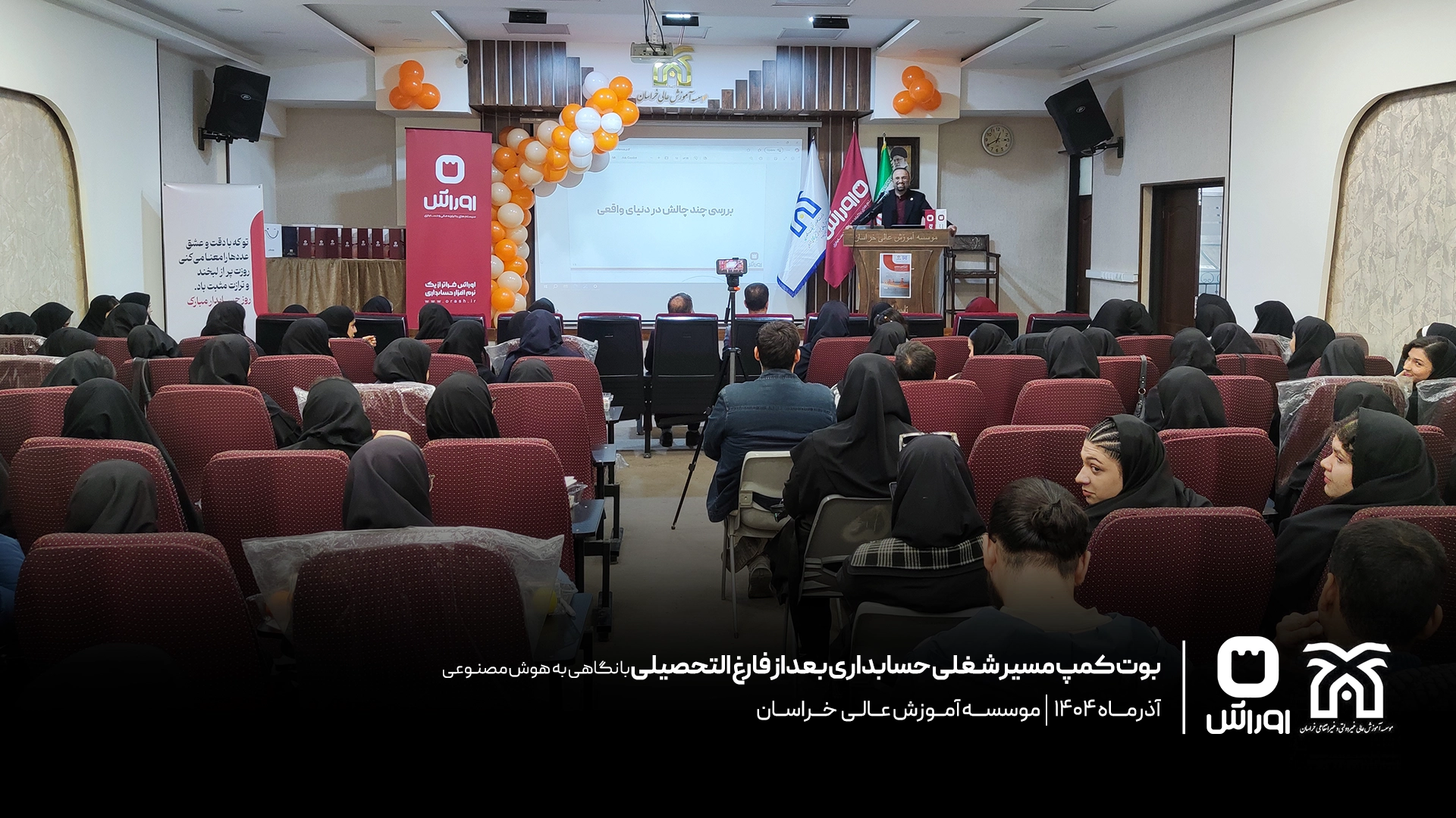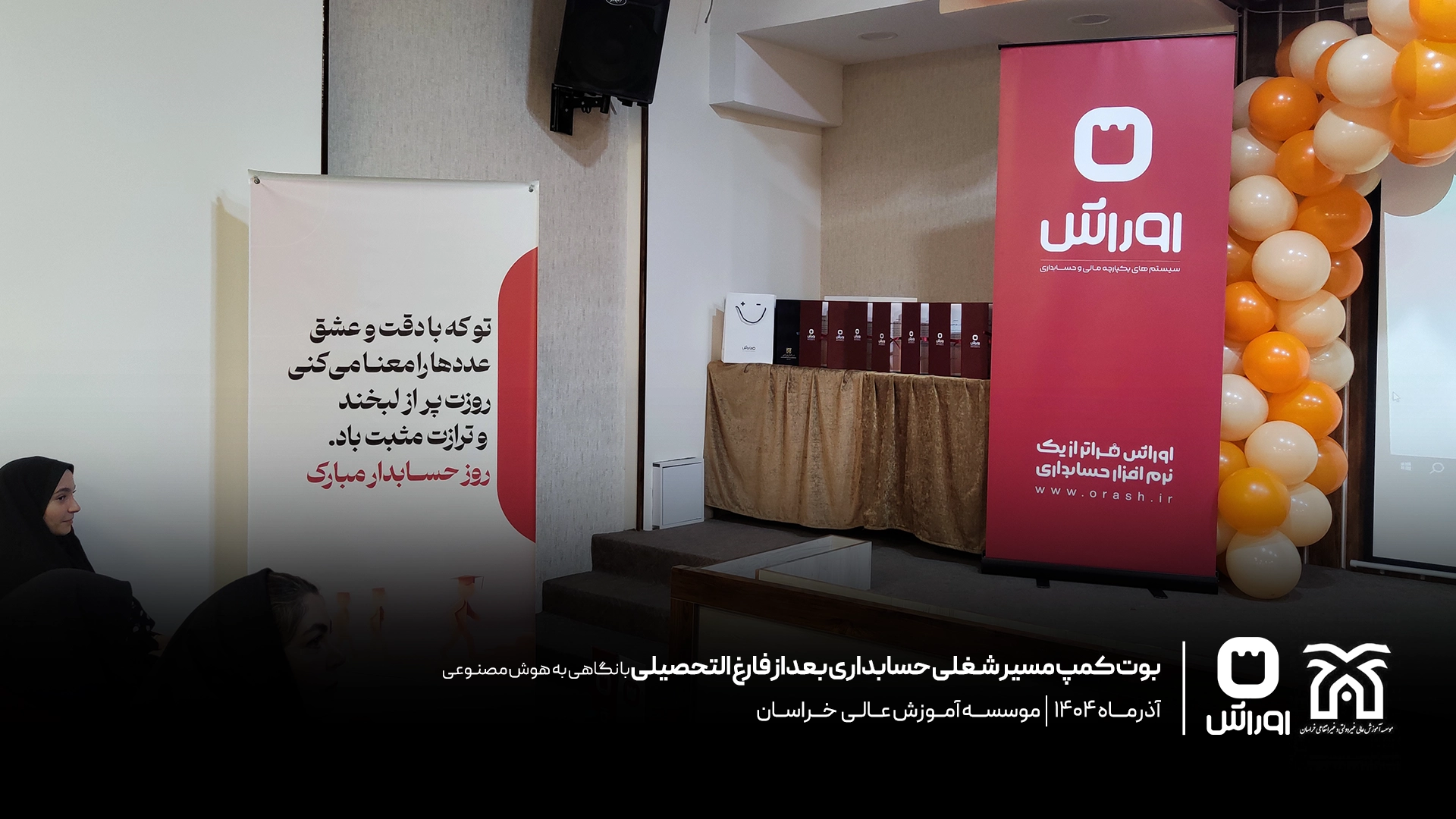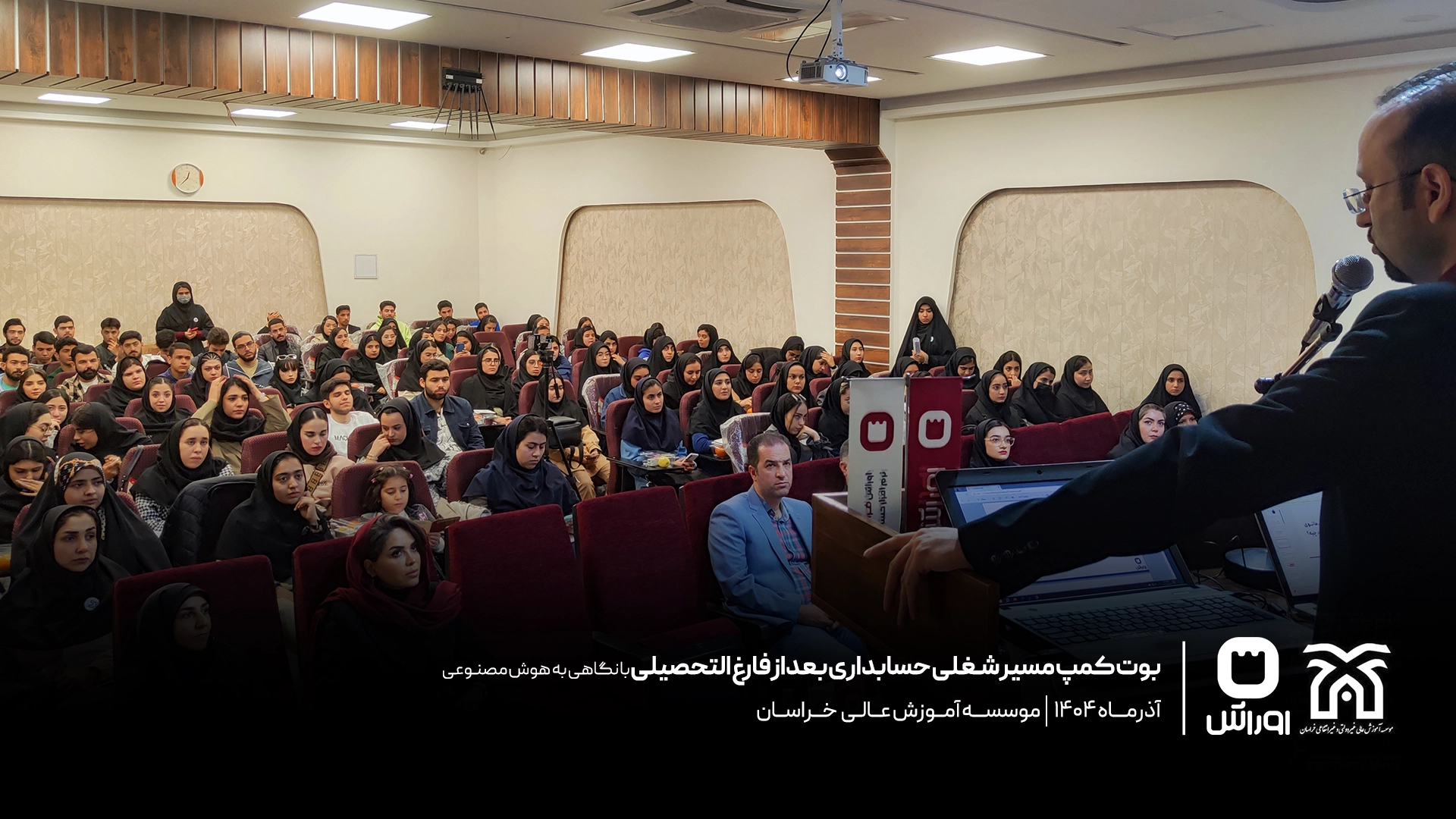 بوت‌کمپ تخصصی «مسیر شغلی حسابداری بعد از فارغ‌التحصیلی» به مناسبت روز حسابدار در مرکز آموزش عالی خراسان با حضور دانشجویان رشته حسابداری برگزار شد. در این رویداد، محمدحسین احمدنیا، مدیر گروه حسابداری این مرکز، به تبیین مسیر ورود حرفه‌ای به بازار کار پرداخت و آقای محمد ارشد طهرانی، هم‌بنیان‌گذار شرکت اوراش، با تمرکز بر نقش هوش مصنوعی، به بررسی تفاوت‌های دانشگاه و بازار کار و مهارت‌های مورد انتظار حسابدار آینده پرداخت. این برنامه با برگزاری مسابقه تخصصی، تقدیر از دانشجویان برتر و اهدای جوایز و لوح یادبود به پایان رسید.